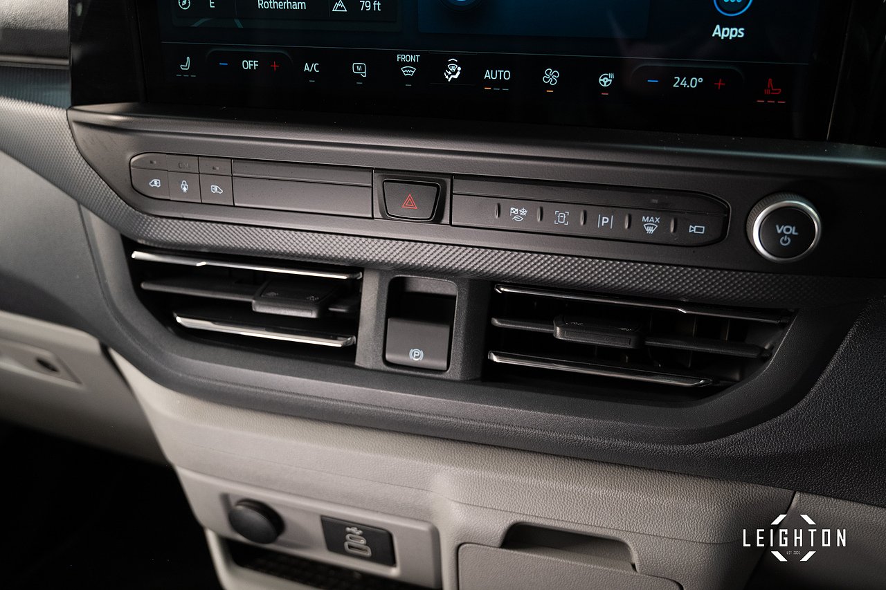 11kW Three Phase Onboard AC Charger, 13in Touchscreen, 16in Alloy Wheels - Sparkle Silver, 2 Remote Keys, 3 Seat Rear Seats with Underseat Stowage, 5G Embedded Modem, ABS - Anti-lock Braking System, AECS NO SMS - Roll Detect 2G, Alcohol Interlock, Automatic Air Conditioner, Automatic Headlights with Rain Sensing Wipers, Body Colour Rear Bumper, Body Coloured Exterior Mirror Finish, Bodyside Mouldings - Body Colour, Bottle Holder - Twin 2 litre Bottle Capacity - Facia-Mounted, Bumper - Body Colour Front Bumper, Carpet Floor in First Row and Rubber in Second Row, Comfort Dual Passenger Seat Pack, Courtesy Light, Daytime Running Lamps, Door Handles - Body Colour, Doors - Dual Side Load, Drivers Airbag, Dual Power Mirrors - Auto-Power Fold and Heated, EBA - Emergency Brake Assist, EBD - Electronic Brakeforce Distribution, ESC - Electronic Stability Programme, Electric Brake Boost, Electric Windows - Power Front with Driver-Passenger One-Touch, Emergency Brake Light Flashing, Engine Immobiliser, Fixed 2nd Row Windows, Fixed DSS LED Headlamps with Auto High Headlamps, Ford Easy Fuel System, Front Seat Belts with Pre-Tensioners, Front Splash Guard, Front Windshield Defroster - Quick Clear, HLA - Hill Launch Assist, Half Height Polypro Interior Trim Panels, Headliner - Extended - Moulded, Hill Start Assist, Hinged Rear Cargo Door, Inclination Anti-Theft Sensor, Interior Grab Handle with Drivers Sunglasses Holder, Interior LED Lights, Keyless Entry, LAC - Load Adaptive Control, Load Compartment - Tie Down Loops x6, Lockable Glovebox, Locking Wheel Nuts, Mechanical Parking Brake, Moulded Load Floor Liner, Passenger Airbag, Polymer Moulded Bulkhead, Power Assisted Steering, Power Door Deadlocks - Double Locking, Privacy Glass, RSC - Roll Stability Control, Rear Reading Lights, Rear Seat Belts, Rear Seats - ISOFIX Fittings, Rear Splash Guards, Rear USB Port, Reversing Camera Pack - DAT Pack 2, SYNC 4, Seat Belts - 3-Point Diagonal Inertia Reel - All Seats, Single Phase Charge Cord, Spare Wheel - 16in Steel, Standard Unlocking, Steering Column - Rake and Reach Adjustment, Steering Wheel - Leather-Trimmed, Storage - Drivers Side Storage Compartment on Facia Top, Storage - Front Door Map Pockets, Storage - Underseat Stowage Compartment, Super Bright Load Compartment Lights, Temporary Spare Wheel, Thatcham Category 1 Alarm, Tool Kit, Traction Control - TC, Trailer Sway Control, Trip Computer, Tyre Pressure Monitoring System - TPMS, Washer Tank Level Warn Lamp