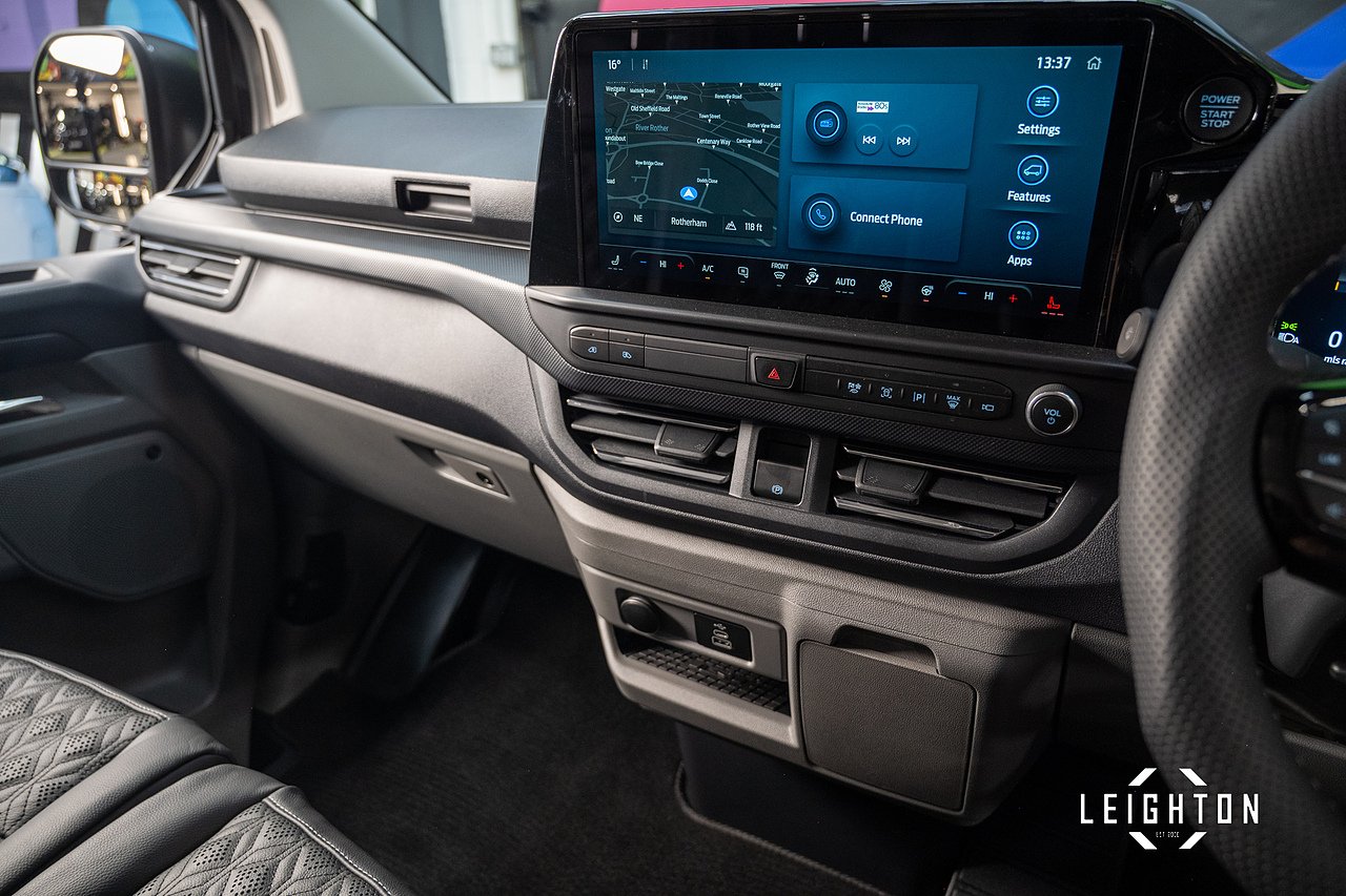 This Ford Transit Custom has been converted by Leighton Vans, a Ford Approved Converter, ensuring all enhancements meet manufacturer-approved standards.