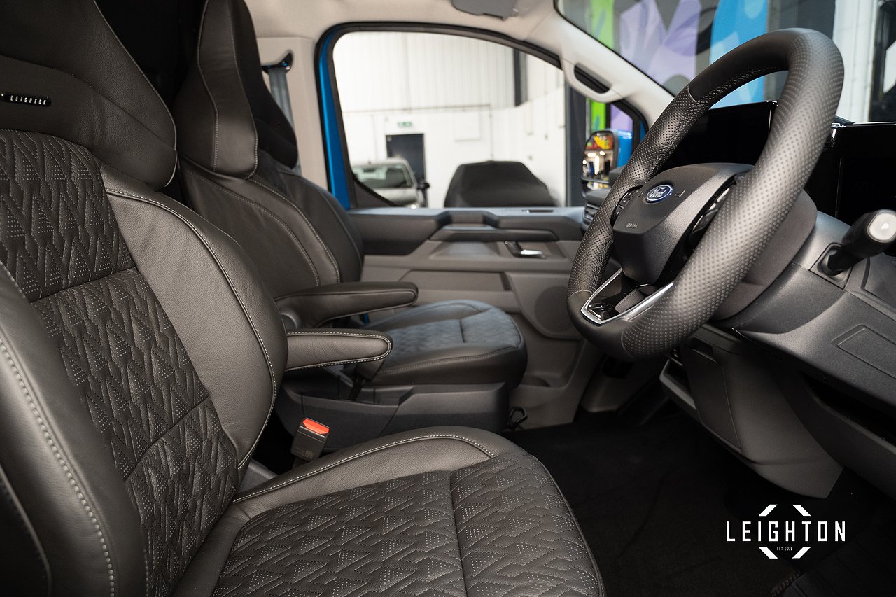 This Ford Transit Custom has been converted by Leighton Vans, a Ford Approved Converter, ensuring all enhancements meet manufacturer-approved standards.