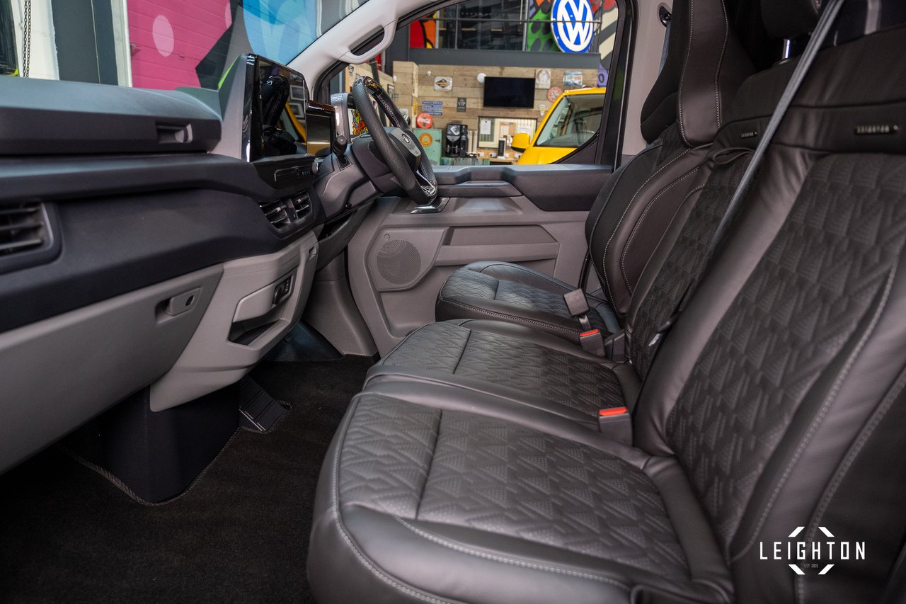This Ford Transit Custom has been converted by Leighton Vans, a Ford Approved Converter, ensuring all enhancements meet manufacturer-approved standards.