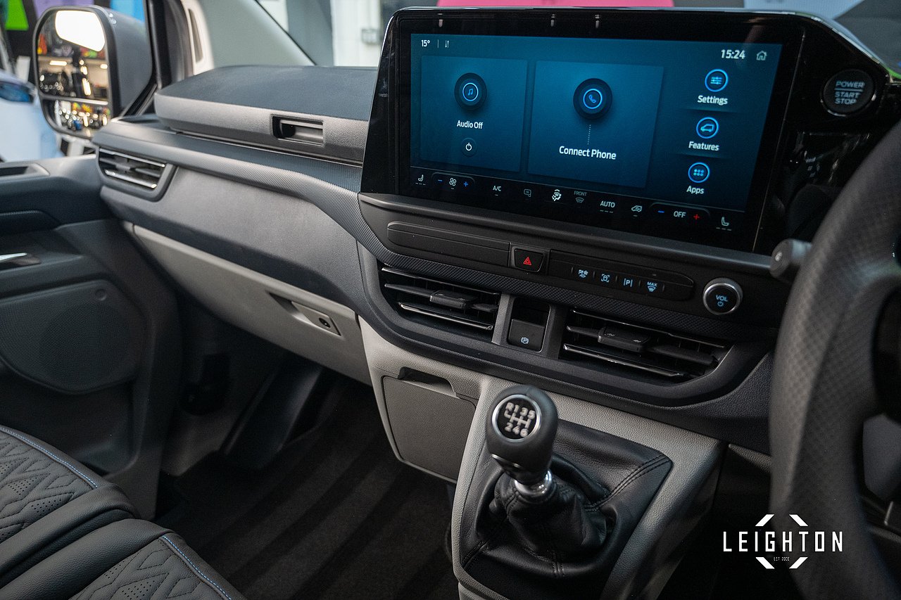 Upgrades - 13in Touchscreen, 16in Alloy Wheels - Sparkle Silver, 2 Remote Keys, ABS and ESP Plus, Alcohol Interlock, Automatic Air Conditioner, Body Colour Rear Bumper, Body Coloured Exterior Mirror Finish, Bulkhead - Full Steel, Bumper - Body Colour Front Bumper, Comfort Dual Passenger Seat Pack, Configurable Unlocking - Config 1, Courtesy Lights - Header, Daytime Running Lamps, Doors - Rear Hinged, Driver Airbag Restraint, Driver Illuminated Sunvisor, Dual Note Electric Horn, Dual Power Mirrors - Auto-Power Fold and Heated, ESC - Electronic Stability Programme, Electrically-Operated Front Windows with One Touch Drivers, Embedded Modem, Emergency Brake Light Flashing, Fixed DSS LED Headlamps with Auto High Headlamps, Ford Easy Fuel System, Front Active Seat Belts, Front Seat Belts with Pre-Tensioners, Full Height Polypro Interior Trim Panels, HLA - Hill Launch Assist, Interior Grab Handle with Drivers Sunglasses Holder, Interior LED Lights, Kerbside Side Load Door, Keyless Entry and Start System, Load Compartment - Tie Down Loops x6, Lockable Glovebox, Locking Wheel Nuts, Mechanical Parking Brake, Moulded Load Floor Liner, Passenger Airbag, Passenger Illuminated Sunvisor, Power Assisted Steering, Power Door Deadlocks.