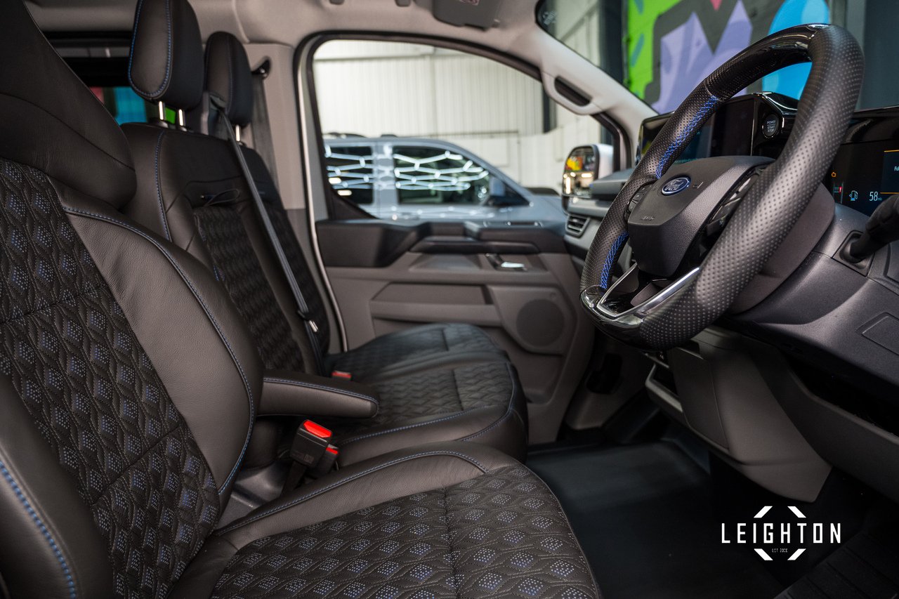 This Ford Transit Custom has been converted by Leighton Vans, a Ford Approved Converter, ensuring all enhancements meet manufacturer-approved standards.