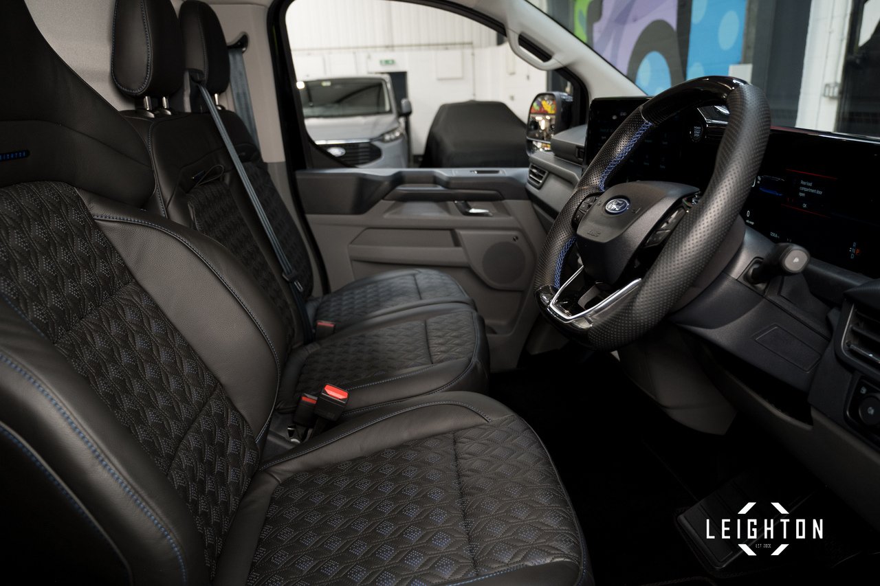 This Ford Transit Custom has been converted by Leighton Vans, a Ford Approved Converter, ensuring all enhancements meet manufacturer-approved standards.